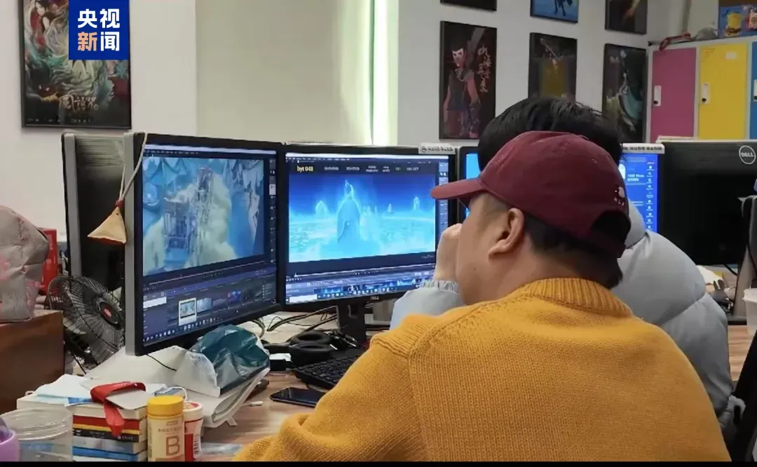 《哪吒之魔童闹海》幕后工作团队确认画面效果 图源:“央视网”微信公众号